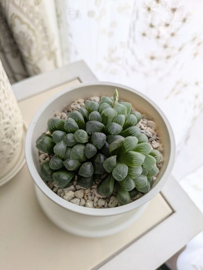 めちゃくちゃ可愛くて、ハオルチアは直射日光に弱いイメージがあるので窓際の明るい場所で育てています。