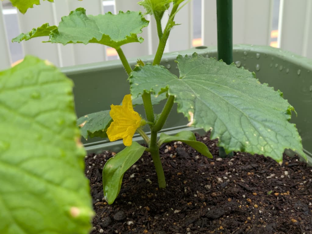 花が咲いてから1週間ちょっとくらいで収穫できるとのこと。楽しみ🥒