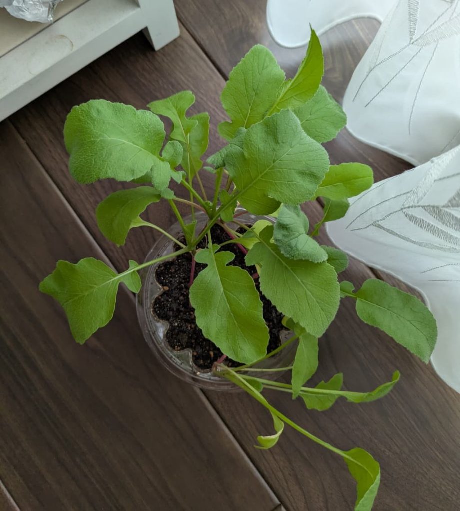 ただ、ラディッシュの葉っぱも食べることが出来るということなので、根っこ部分を食べれなくても葉っぱとして食べれるようにもう少し育ててみようと思います!