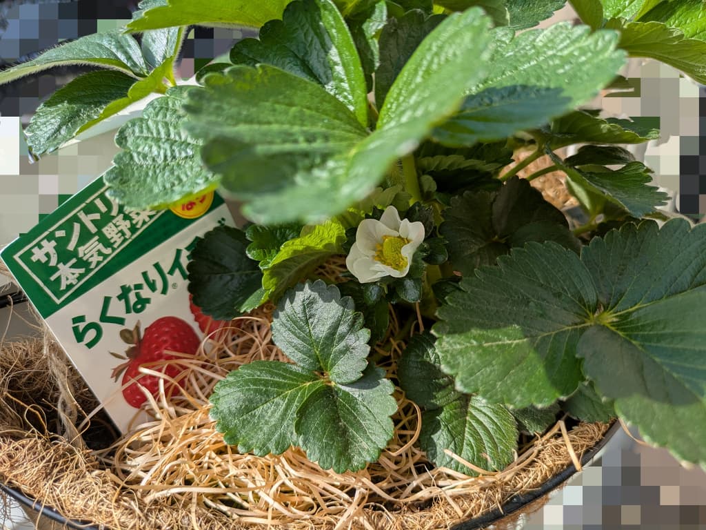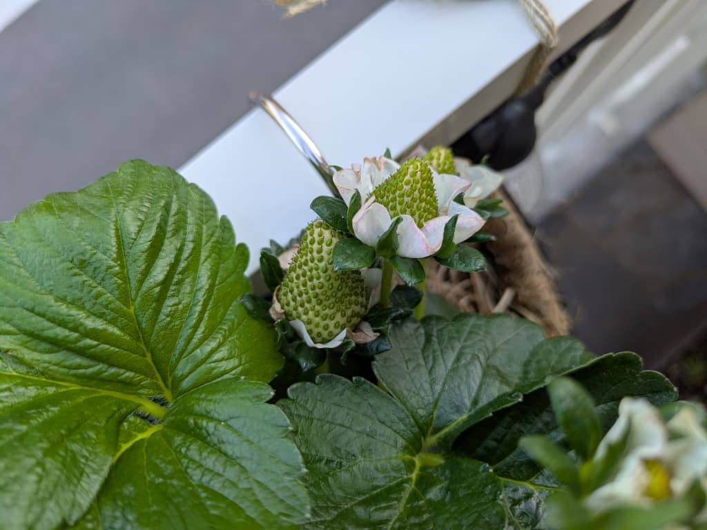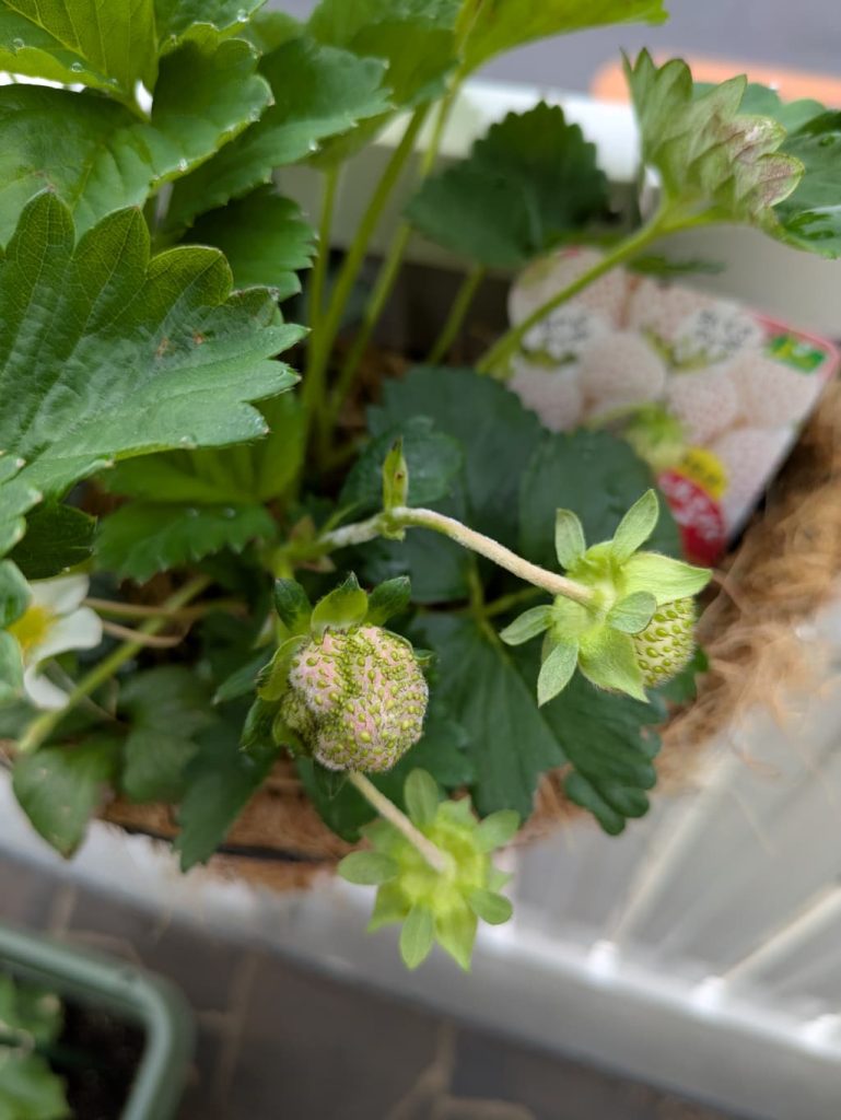 3つ目か4つ目に咲いたお花は受粉が成功したようです🍓