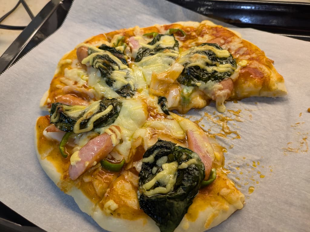 写真映えはしない仕上がりになってしまいましたが、生地も自分で捏ねて作ったので買うより美味しいピザになりました👍🏻こういうのがやりたかった!!!(笑)念願叶って大満足です。
