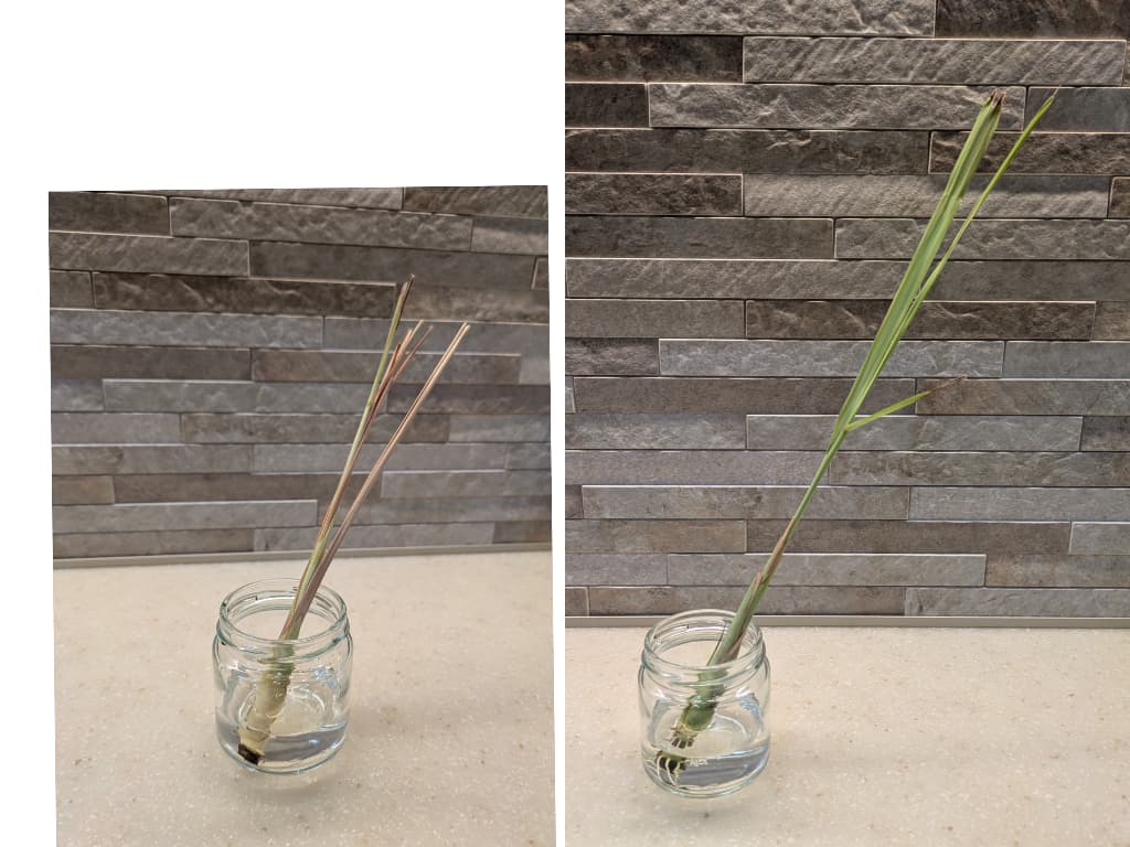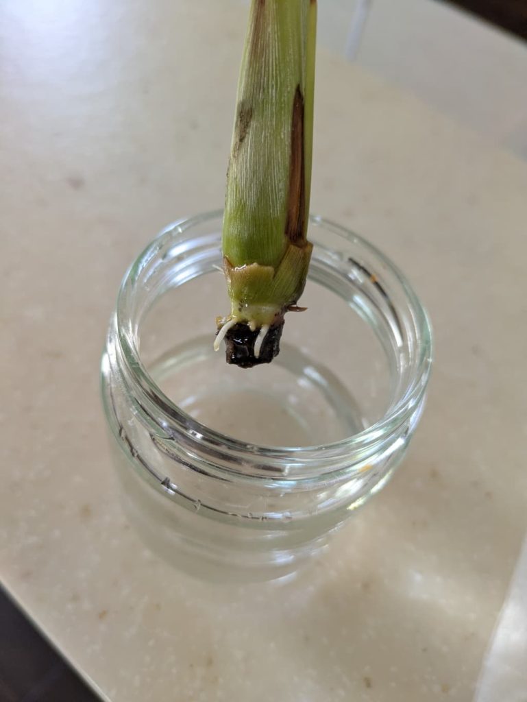 根っこが出ていないレモングラスを購入した場合は、水に浸けて発根させてから土に植えましょう!!!(ちなみに水交換は朝と夜、時間があれば昼間もって感じで一日に何度か行うのが良いです。)