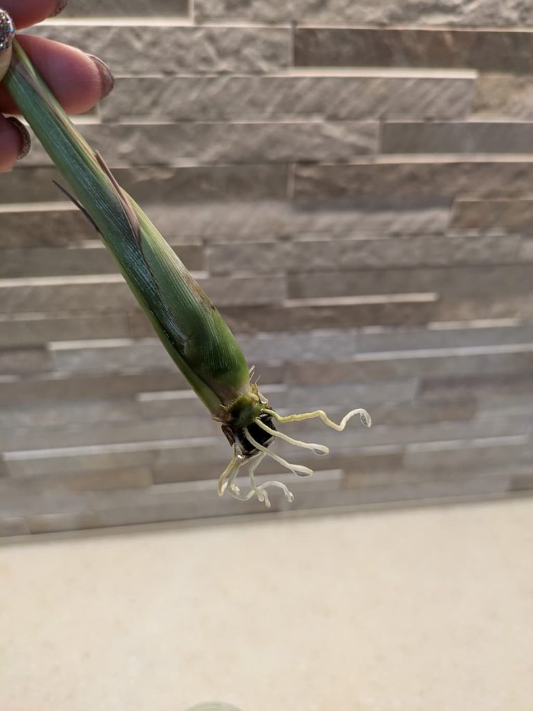 いざ根っこが出たらグングン大きくなってきて、最初は風が強い日には倒れそうに斜めになったりしていたけれど、ここまで大きくなったら強風にもグラつかない強い株になりました!